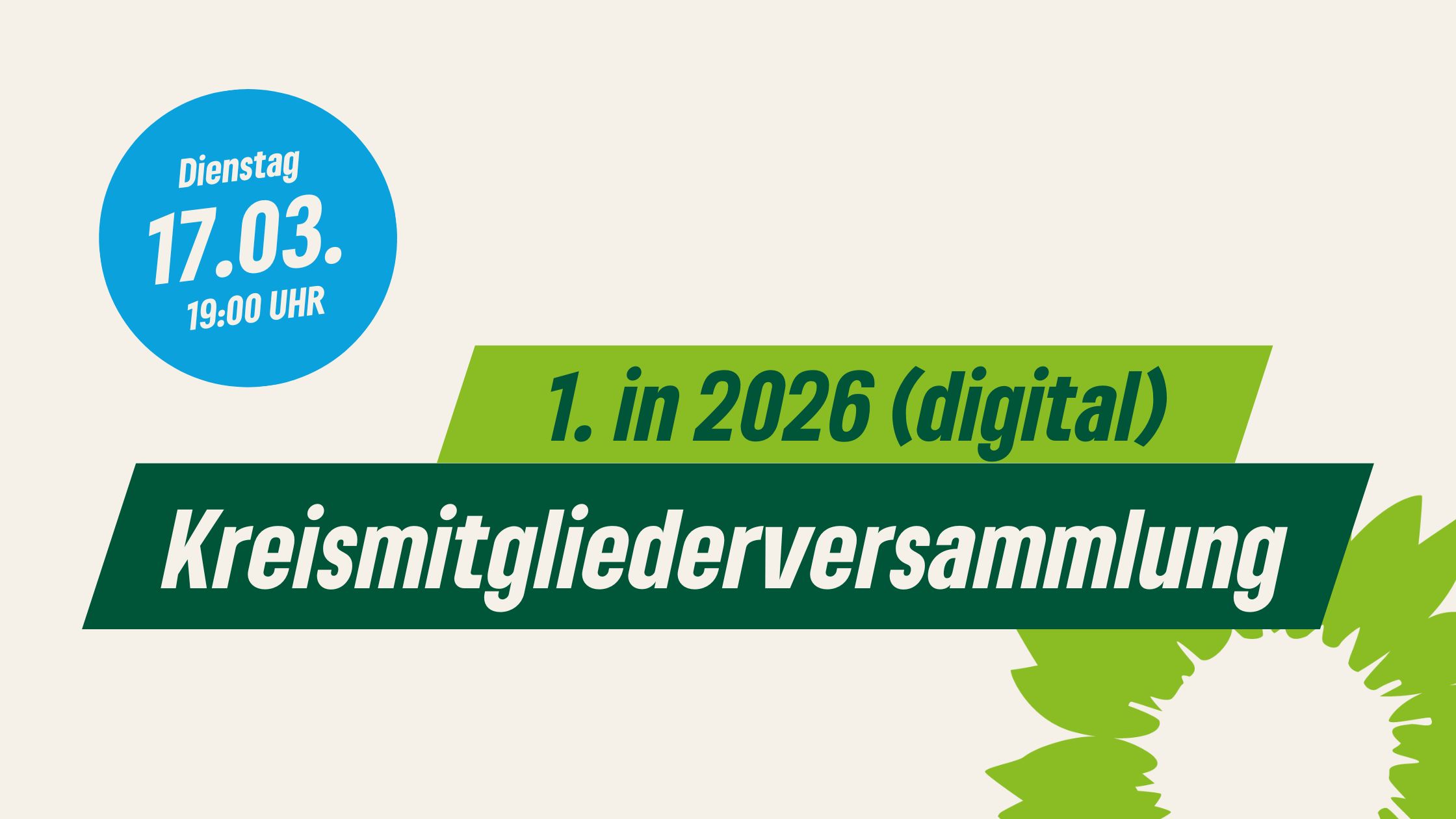 Kreismitgliederversammlung (1. in 2026) Dienstag17.03.202619:00 - 22:00 UhrdigitalDownload als ics-Datei